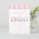 Celebrate your toddler's milestone with this "Sweet to be Eight" ice cream parlor birthday invitation. This adorable design features watercolor sprinkle typography, a classic pink awning, and a whimsical sundae aesthetic. Perfect for a summer ice cream social, this cheerful invite is easily personalized to scoop up some fun for your daughter’s third birthday party.