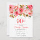 Invitación Pink Summer Floral Pretty 90th Birthday