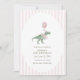 Invitación Pink Three Rex Dinosaur balloon Third Birthday