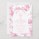 Pink Toile de Jouy Baptism & First Birthday Bow Christening Invitation