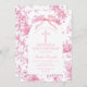 Invitación Pink Toile de Jouy Baptism & First Birthday Bow
