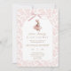 Elegant baby shower invitation featuring a sweet bunny in a pink tutu with a soft floral toile background and delicate ribbon detail. A romantic spring design that feels classic, feminine, and refined—perfect for a bunny-themed baby shower or chic baby sprinkle.