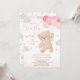 Celebra tu pequeña con nuestra invitación de Baby Shower "Pink We Can Bearly Wait" (rosado podemos esperar), que incluye un adorable oso marrón con un arco rosado, sosteniendo globos rosados. El fondo está bellamente adornado con nubes suaves y estrellas brillantes, creando un ambiente de ensueño perfecto para celebrar la próxima llegada de tu pequeño. BBS629
