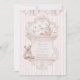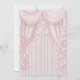 Beautiful pink watercolor whimsical shelf with vintage toys creating a fancy frame surrounding lovely fonts and scripts done in coordinating colors baby shower invite. A pink and white sweet coordinated stripe background with a feminine and elegant look. A perfect baby shower invitation for any season.