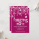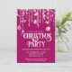 Invitación a la fiesta de Navidades con luces de cuerdas rosas y blancas con una diversión maravillosa para una fiesta festiva.