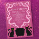 Cute Witch A Baby is Brewing Halloween Baby Shower invite features adorable illustrations of black cats, a cauldron,and stars against a pink background.