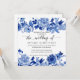 Invitación Pintura de Boda floral azul blanco de influencia a