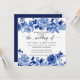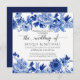 Formato cuadrado con estilizadas flores chinas chinas chinas chinas chinas y borde de hojas superior e inferior que superpone ligeramente el rectángulo blanco, de borde interior a borde (se puede añadir un color de fondo que se mostrará por encima y por debajo si se desea). Un pájaro se sienta en una rama entre las flores del jardín. Ideal para un boda en cualquier época del año, diseño creado por la artista Audrey Jeanne Roberts. Copyright. acuarela pintada a mano Azul Influencia asiática Floral Chinoiserie tiene una colección completa disponible aquí (copiar y pegar enlace en navegador): https://bit.ly/2DS0gN6
