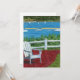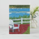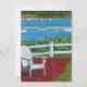 Esta vívida pintura al pastel al óleo presenta una silla Adirondack blanca en un patio de ladrillo rojo con vista a Cape Cod. Verde brillante, azul, rojo y amarillo crean un impresionante paisaje marino de verano en la costa de Nueva Inglaterra.