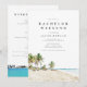 Esta invitación de despedida de soltero y plantilla de itinerario presenta una pintura en acuarela de las costas de playa tropical de Cancun, México y un itinerario en el reverso. Edite fácilmente la mayoría de la redacción para que coincida con su evento.