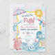 Invitación Piscina de hermanos Groovy Pastel rosa y azul Cump