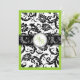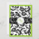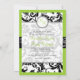PixDezines invitaciones de monograma, damasko de pavo en negro con color de fondo de manzana verde grannysmith de bricolaje.