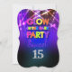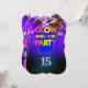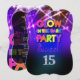 PixDezines fiesta glow, luces de neón y rayos láser en azul violeta, con diamantes incrustados con engaste de plata para tu fiesta de dulces 15 / quinceañera, acentuado con corona de plata falsa.com™ y PixDezines™ en zazzle.com