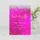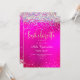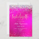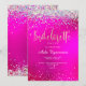 PixDezines invitaciones de Despedida, fuente de letra de firma moderna acentuada, confeti holográfico de colores y fondo iridiscente rosa/magenta caliente y llamativo. Todos los elementos son ajustables, color de fondo + fuentes DIY.