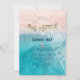 PixDezines surfea, Bar Mitzvah de playa. Agua azul océano en costa de arena rosa. Nuestro diseño dinámico te permite editar todos los elementos. Haz clic en el botón "personalizar más" para editar más o agregar más texto / monograma.