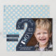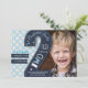 Una invitación moderna para el segundo cumpleaños de tu hijo, con 2 en pizarra negra y puntos azul claro.