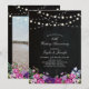 Celebre su día especial con esta invitación personalizada para la fiesta de aniversario de boda con foto! Este diseño presenta hermosas flores y luces de cadenas en un fondo rústico de pizarra. Puede personalizar todo el texto y agregar su foto en el reverso. Más diseños disponibles en mi tienda BaraBomDesign.