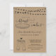 La invitación cuenta con ilustraciones de pizza y brindis con cerveza en un fondo kraft rústico maravilloso.