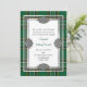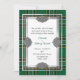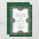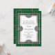 Invitación de boda de inspiración irlandesa realizada en el clásico patrón de lona tartán nacional irlandés verde, amarillo, negro y blanco. Gráficos de un área de texto con marcos de tono plateado, con nudos celtas decorativos en cuatro lados. Personalice el texto del personalizado para que se adapte a su boda irlandés.