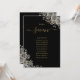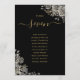 Estos elegantes números de mesa de boda góticos con rosas florales negras y doradas pueden ser personalizados con el plan de asientos de sus invitados en tipografía chic. Las tarjetas están impresas en el anverso y reverso (doble cara). Diseñado por Thisisnotme©