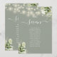 Estas elegantes luces de cadena florales de vegetación verde salvia para número de mesa de boda pueden ser personalizadas con el plan de asientos de sus invitados en tipografía chic. Las tarjetas están impresas en el anverso y reverso (doble cara). Diseñado por Thisisnotme©