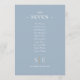 Estos elegantes números de mesa de boda en azul polvo pueden personalizarse con tu monograma y el plan de asientos de los invitados en tipografía chic. Las tarjetas están impresas por delante y por detrás (a doble cara). Diseñado por Thisisnotme©