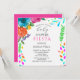 Una colorida invitación plana para fiesta de baby shower con un diseño de arte floral de fiesta. Esta invitación para baby shower se puede personalizar con su información.