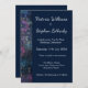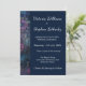 Bonita Lavanda Elegante y Invitaciones a la Boda Azul Oscura. Un fondo azul índigo oscuro con un toque de lavanda y encaje que crea una invitación impresionante. Personaliza esta invitación de boda para convertirla en tu propia.