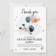 Tarjeta de agradecimiento por cumpleaños temática del espacio exterior.