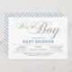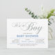 Invitación Plata, azul | Moderna Typography Boy Baby Shower