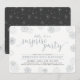 Celebra tu día especial con este diseño de invitación de fiesta elegante que presenta una tipografía y patrones de fondo hermosos en textura de plata falsa. Perfecto para cualquier fiesta sorpresa. Puedes personalizar todo el texto como desees.