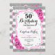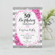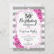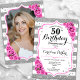 Invitación Plata floral Foto rosa blanco 50 cumpleaños