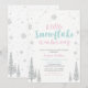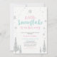 Celebre un día especial para su ser querido con esta linda invitación de un país de ensueño invernal. Este diseño presenta copos de nieve con brillo plateado con la linda frase "Un pequeño copo de nieve está en camino". Invitación perfecta para una fiesta de bebé con tema invernal o baby sprinkle.