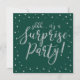 Celebra tu día especial con esta plantilla de invitación de cumpleaños sorpresa moderna plata y verde. Este diseño presenta caligrafía texturizada dorada elegante y fondo de confeti. Puedes personalizar el texto para cualquier cumpleaños o evento. (21, 30, 40, 50, 60, 70, 80, 90, 100)