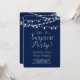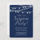 ¡Celebra un día especial con esta invitación de fiesta sorpresa moderna! Este diseño presenta una tipografía brillante plateada elegante y luces de fondo en un fondo azul marino. ¡Puedes personalizarlo para cualquier edad o evento!