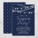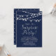 Celebre su día especial con esta elegante invitación de aniversario de sorpresa. Este diseño presenta una tipografía de escritura elegante y cuerdas de luces sobre un fondo marino. Perfecto para una fiesta de jardín, una fiesta en un granero o cualquier fiesta sorpresa.