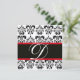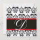 Invitación PLATA Y NEGRO DAMASCO ROJO MONOGRAMA , blanco