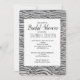 Invitación Plateado Negro Glitzy Estampado de Cebra Brillo
