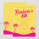 Otra invitación audaz para una fiesta de cumpleaños de JessicaAmber - pregunta por las órdenes de los personalizados! Esta elegante tarjeta presenta una combinación de colores rosa y amarillo. Se combina con letras en las que se indica el nombre de la persona de cumpleaños y los detalles del fiesta, incluida la ubicación, la fecha y la hora. Las palmeras de la parte de abajo hacen de esta carta un lugar ideal para los fiestas de la playa y de la piscina. Busque en mi colección sobres y papel coincidentes. ・・ Para más suites fiestas, visite mi tienda Zazzle.com/JessicaAmberArtist ・・ O visite mi sitio web www.jessicaamber.com.au