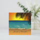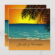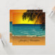 Un romántico diseño tropical de playa con un ilustracion de playa al atardecer con una silueta de hojas de palma en primer plano. El diseño aparece a ambos lados de la invitación a la boda. La parte delantera de la invitación tiene un texto de personalizable para agregar el nombre de la novia y el novio, mientras que la parte trasera es personalizable para los detalles de su próxima ocasión especial. Esta invitación nupcial se coordina con la playa tropical en la colección de Bodas Sunset. Si necesita ayuda con la personalización para su día especial o le gustaría esto en productos no ofrecidos actualmente con este diseño, por favor contáctenos a través de nuestra tienda WeddingBazaar.