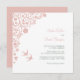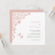 Woodland, diseño secreto de la invitación a la boda floral rosa del jardín con aves amorosas. Esquina detallada de patrón floral en rosa rubor. Personalizar con sus nombres en letra de guión y la información de su boda en letras verdes de salvia. Diseñado para coincidir con nuestra colección Lovebirds Rubor Pink Secret Garden Wedding.