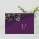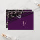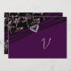 Púrpura real y rica de ciruela con un terciopelo como la cinta y el doble corazón estilo diamante. Envuelto en un fondo negro con flores metálicas como viñas y flores.