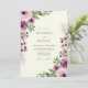 This design features a lush arrangement of watercolor roses in shades of plum, mauve, and dusty rose set against a soft cream background. Delicate greenery and sage green leaves accent the floral clusters, creating a romantic and ethereal mood. The artwork showcases botanical details, including blooming peonies and tiny purple filler blossoms.