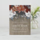 Invitaciones rusticas a fiestas de graduación floral con luces de cuerdas y ramo de flores moradas, blancas y borgoñas