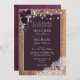 ¡Estamos tan contentos con esta tradicional invitación formal a tomar fotos en color púrpura de ciruela rústica! No fue fácil venir con un diseño rústico de ciruela morada que sentimos que cumplíamos con nuestras exigencias estéticas, pero luego lo hicimos, ¡y ahora estamos enamorados! Con tipografía de escritura con letras a mano, flores de color morado, textura de madera de pino con honores, encaje francés falso de Alençon y luces de cuerda cálidas y brillantes. Parte de una suite boda que esperamos que te guste tanto como nosotros: https://www.zazzle.com/store/elegant_invites_/gifts?cg=196585629586281686&pburl= Copyright Elegant Invita, todos los derechos reservados.