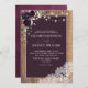¡Estamos tan contentos con esta tradicional invitación formal a tomar fotos en color púrpura de ciruela rústica! No fue fácil venir con un diseño rústico de ciruela morada que sentimos que cumplíamos con nuestras exigencias estéticas, pero luego lo hicimos, ¡y ahora estamos enamorados! Con tipografía de escritura con letras a mano, flores de color morado, textura de madera de pino con honores, encaje francés falso de Alençon y luces de cuerda cálidas y brillantes. Parte de una suite boda que esperamos que te guste tanto como nosotros: https://www.zazzle.com/store/elegant_invites_/gifts?cg=196585629586281686&pburl= Copyright Elegant Invita, todos los derechos reservados.