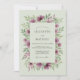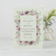 This design features a soft sage green palette adorned with a lush arrangement of delicate purple watercolor poppies and green foliage. These botanical elements create a romantic and airy atmosphere, perfect for a springtime or summer event. Deep plum tones contrast beautifully against the pale background, offering a vintage-inspired aesthetic for your special day.