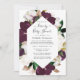 La ciruela oscura simplista y el hellebore blanco y los tulipanes conducen a través de la invitación a la novia o a la ducha de bebé.