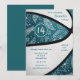 Invitación plumas boho flores teñidas de azul partido de balo