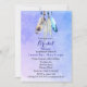 Una invitación de ducha nupcial con un tema amerindio / boho. Un diseño de acuarela con cuatro plumas suaves y delicadas ensartadas juntas que cuelgan del borde superior. El fondo es una textura de acuarela morada azulada suave. Un motivo tribal con un tema de estilo amerindio. Personalice con los detalles de su fiesta.